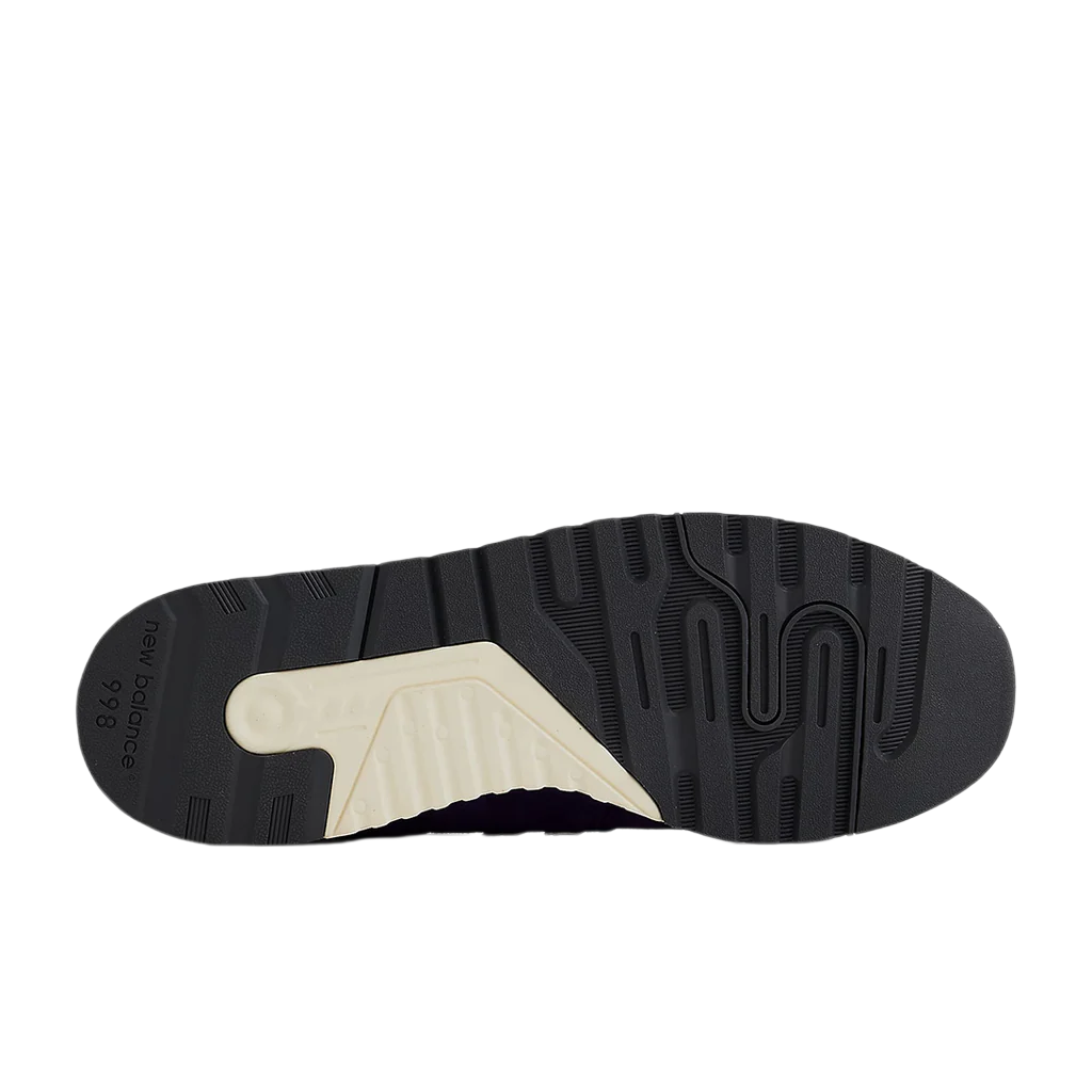 A true embodiment of New Balance's timeless design and performance innovation returns to the MADE in USA lineup. The original 998, released in 1993, was the first shoe to utilize ABZORB cushioning. This revolutionary step forward in shock absorption was matched visually with a sleek updating of the classic 99X series look. The MADE in USA 998 features premium suede, mesh, and pigskin suede upper construction, in a vibrant plum colorway.